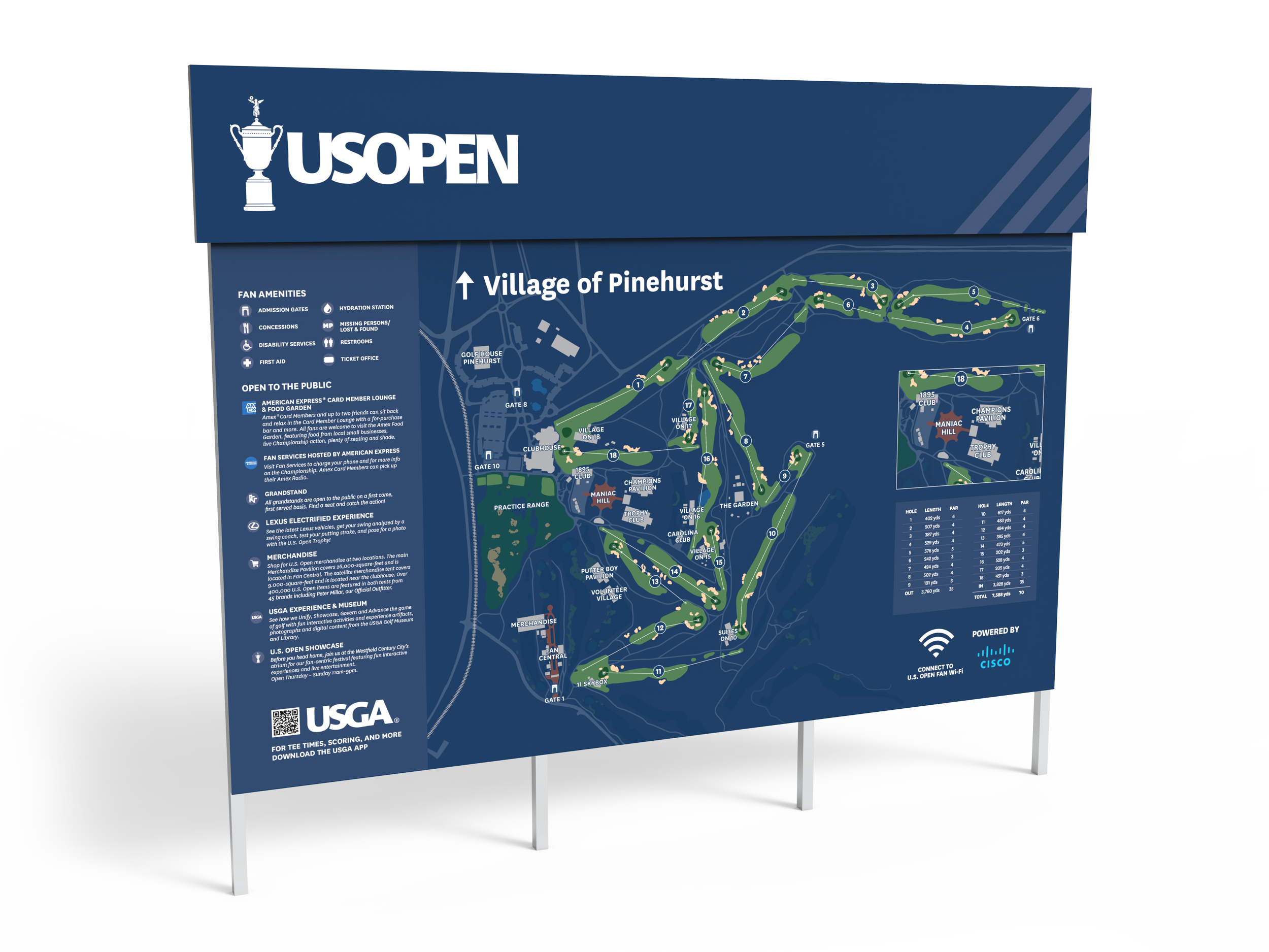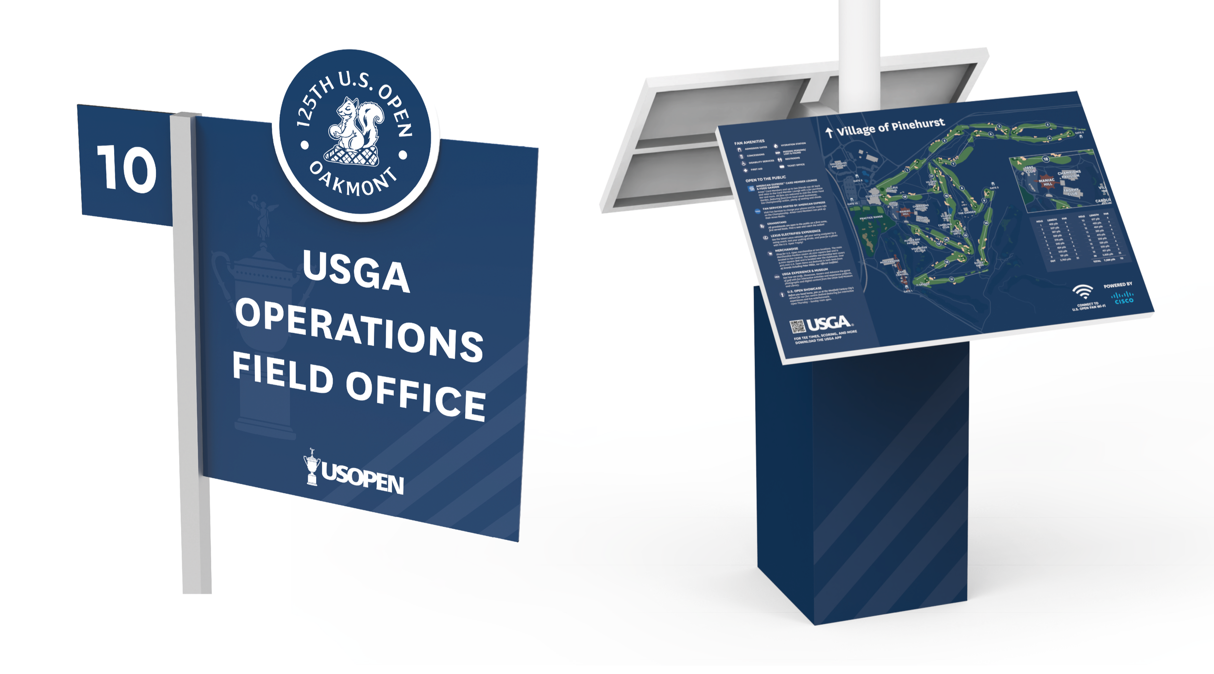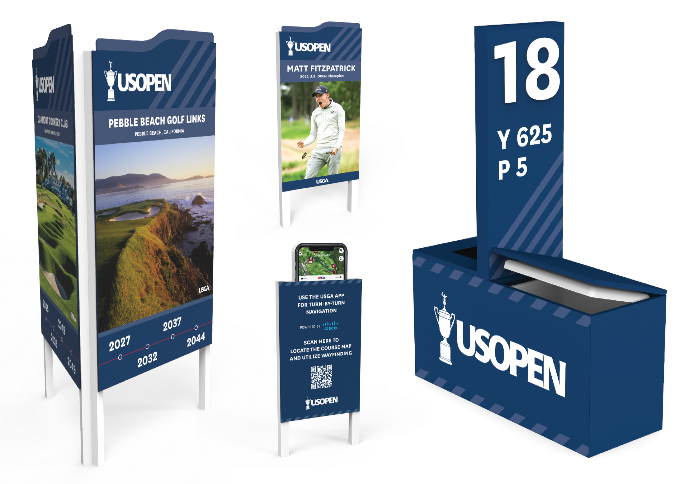 I had the honor of designing the Fan and Player Experience for the 2024 & 2025 U.S. Open Championships. My work spanned a full brand refresh, revitalizing the iconic tournament’s graphic design system, to engineering the tallest way-finding pole ever used, and producing the first 3D-printed elements in the event’s history. The pressure was intense and the task was daunting, but seeing golf’s biggest names such as Tiger Woods, Rory McIlroy, Scottie Scheffler, and many others I have looked up to interact with my work is an experience I’ll never forget.